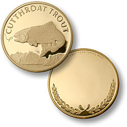 This coin features a detailed image of a Cutthroat Trout, bordered by a classic wreath design.